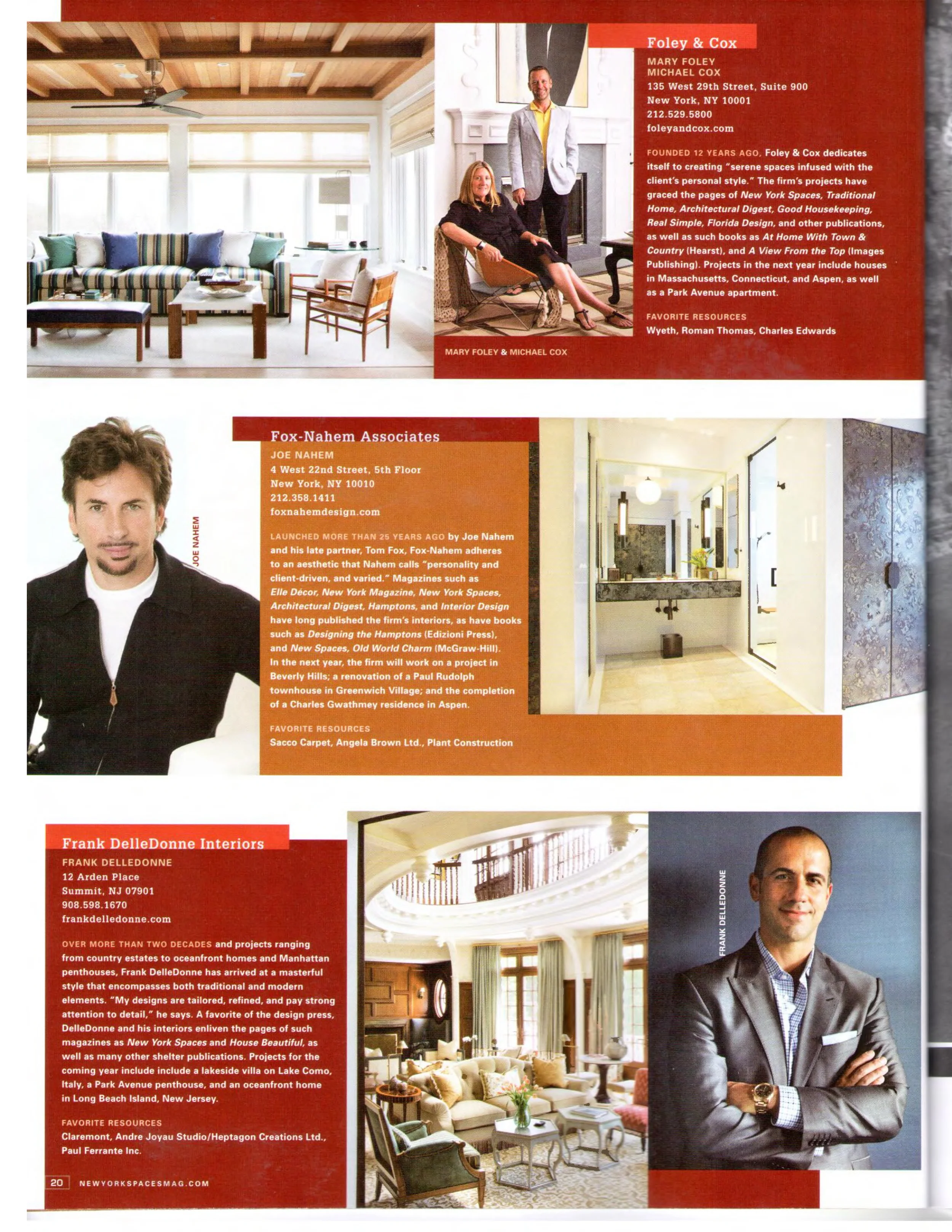 NY Spaces September '13, "50 NAMES you need to know in metro New York design"