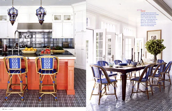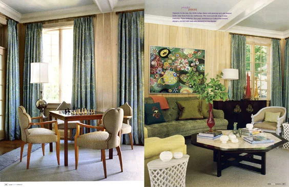 The "fizz" in this Westchester County rehab started on the walls, where embroidered silk, wood mosaic tile and bold point color purged a series of late-1980's spec-house rooms of boring, builder-issue Sheetrock. As project architect Ira Grandberg brought the structure a sense of elegance and proportion, Nahem and his crew redefined its interior with guts and glamour.
