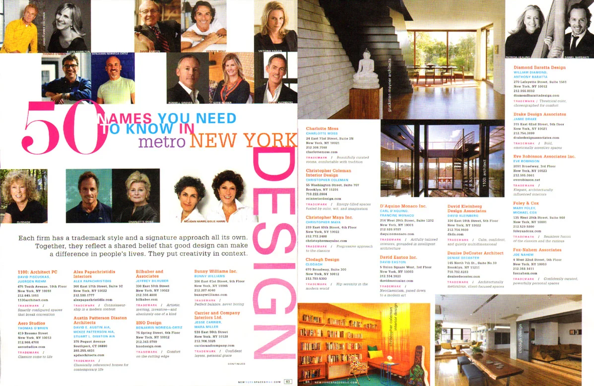 NY Spaces Sep '10, "50 Names You Need to Know in Metro NEW YORK DESIGN"