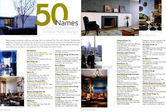 New York Home Sep '06, "50 NAMES you should know in New York design"