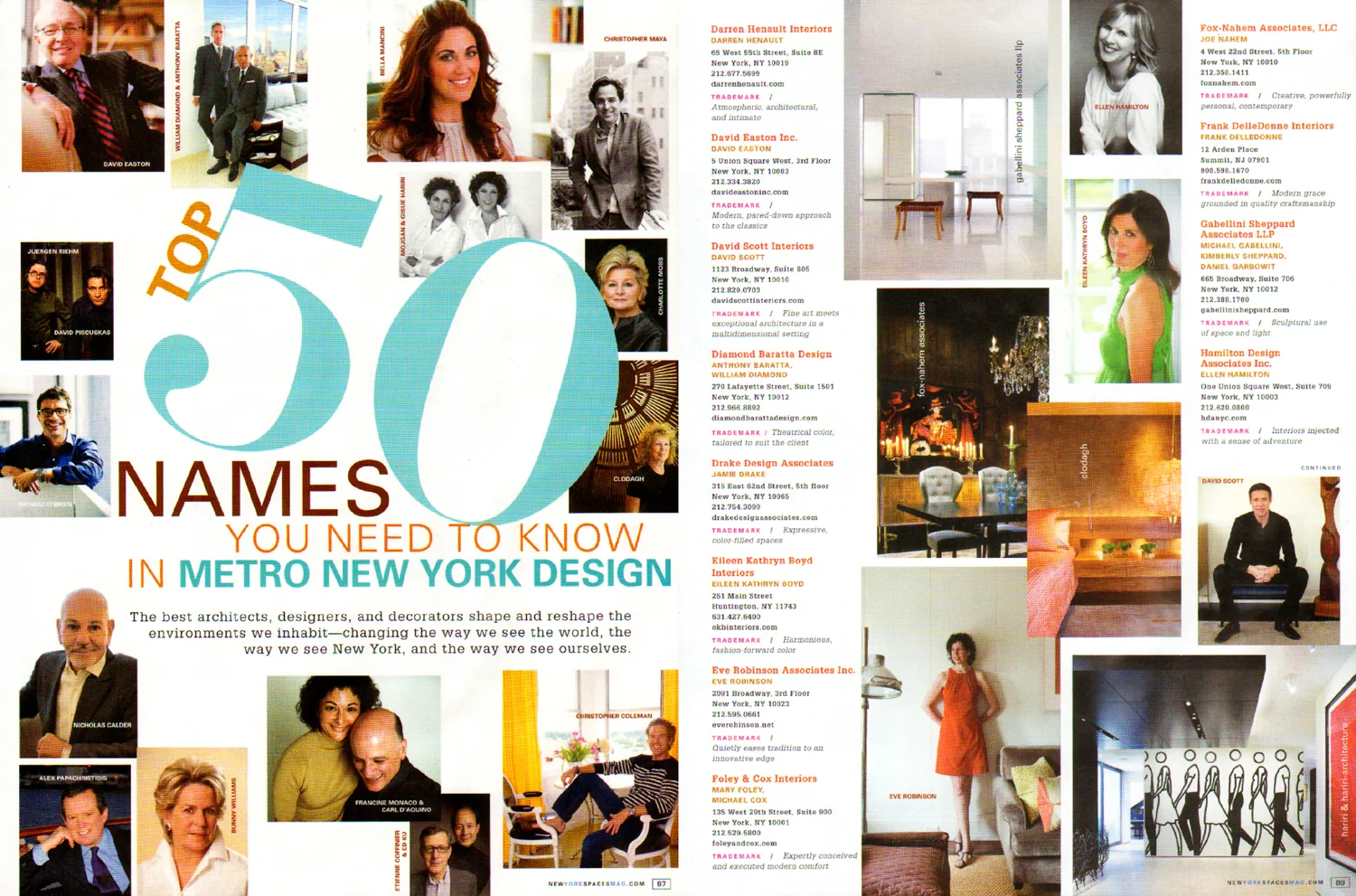 NY Spaces Sep '11, "50 Names You Need to Know in Metro New York Design"