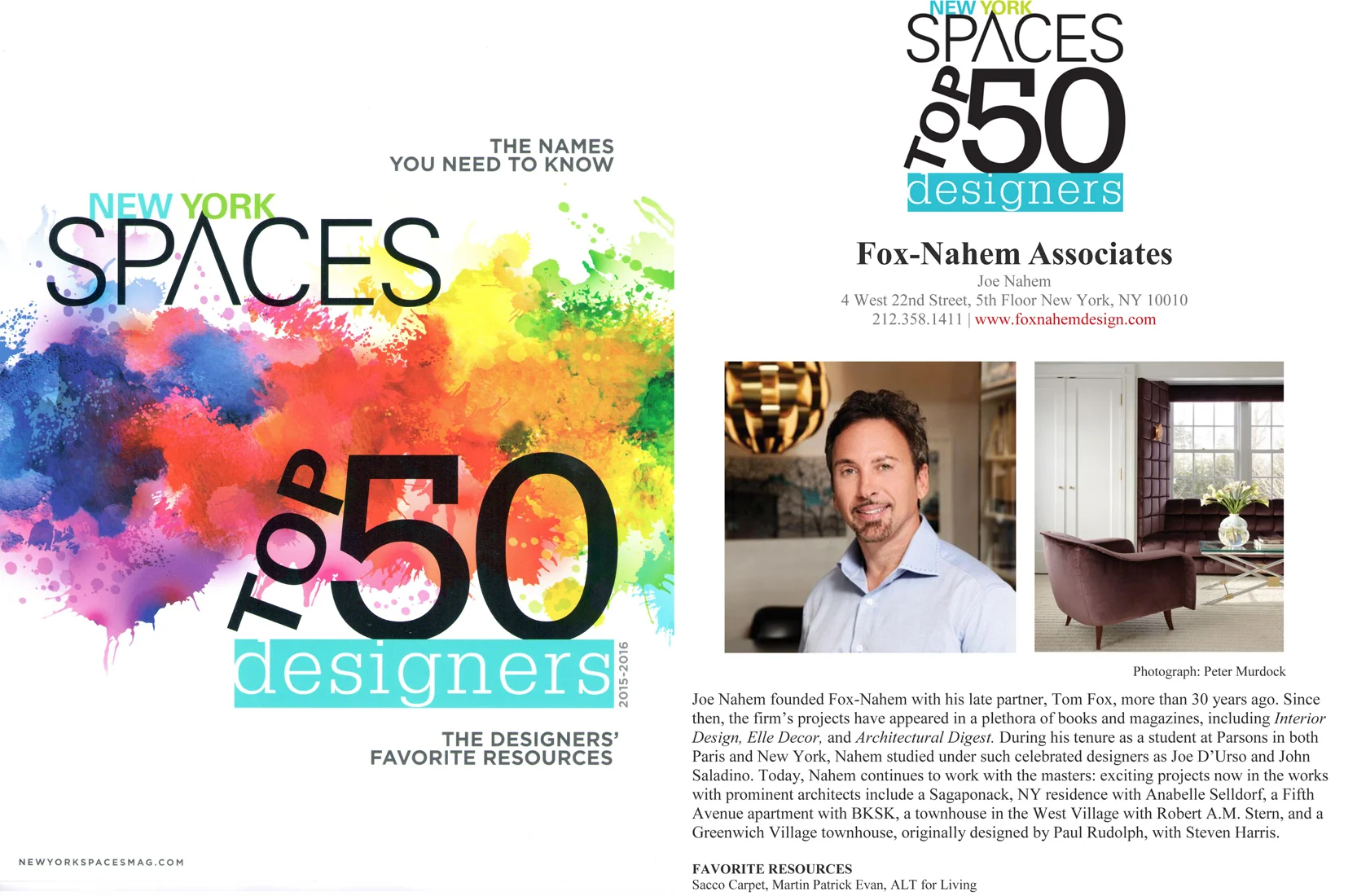 NY Spaces October-December ’15, “TOP 50 NAMES TO KNOW in metro New York design”